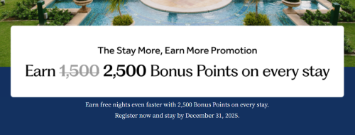 很神奇:希尔顿的Q4突然加码了,每次入住的奖励从1,500分上涨到了2,500分,截止日期仍然是到12月31日。