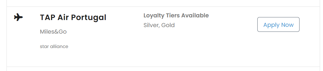- 点击左侧Apply for status match,如果你的会籍合格,定位到TAP Air Portugal右侧就会出现Apply Now字样