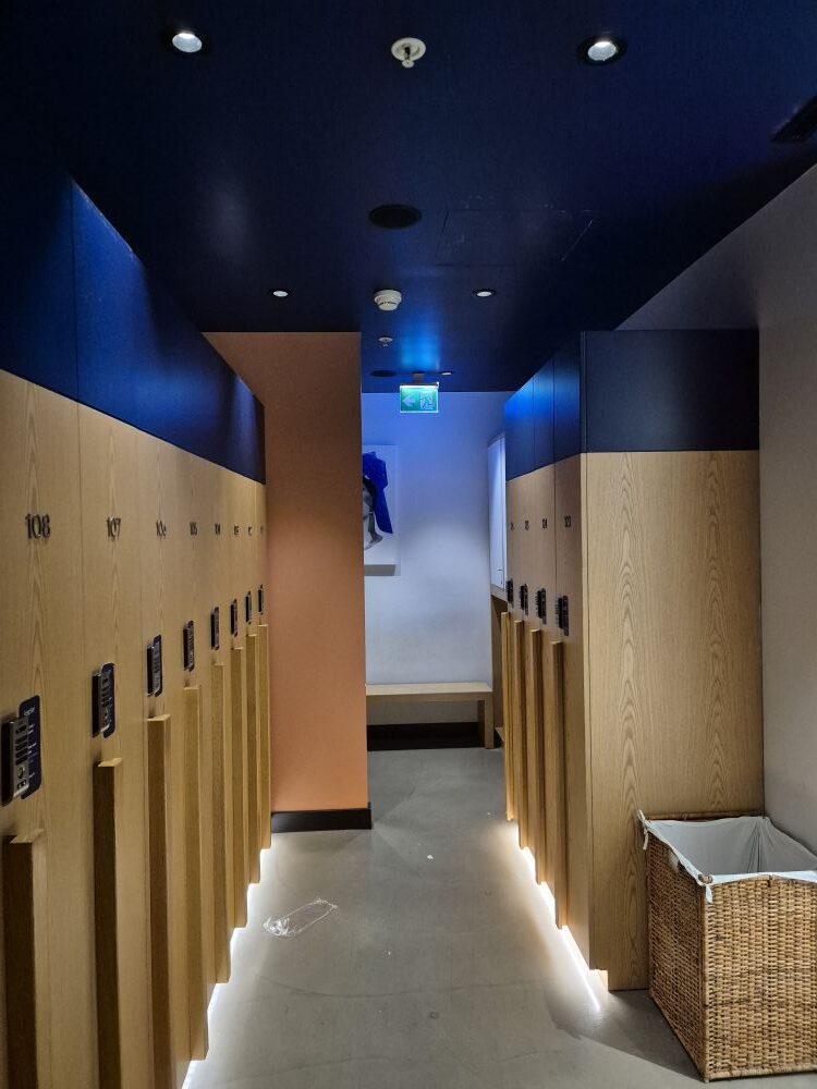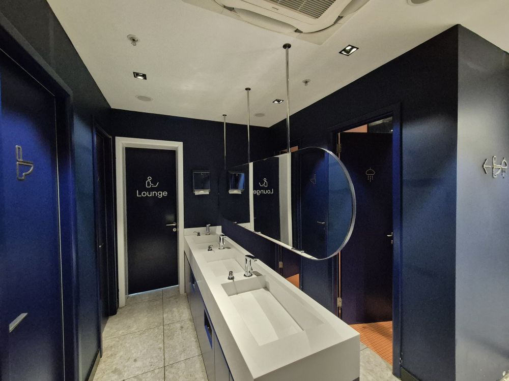 刷卡后有效期为三个小时,扫码进门。一进来就是更衣室还是蛮有意思的,仿佛来到了健身房或者澡堂,完全不像是个机场休息室。