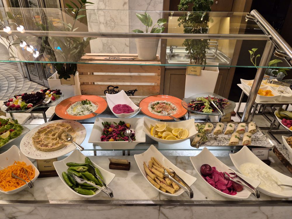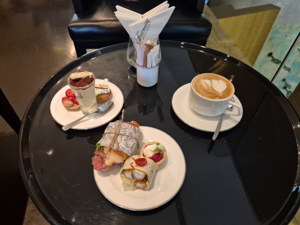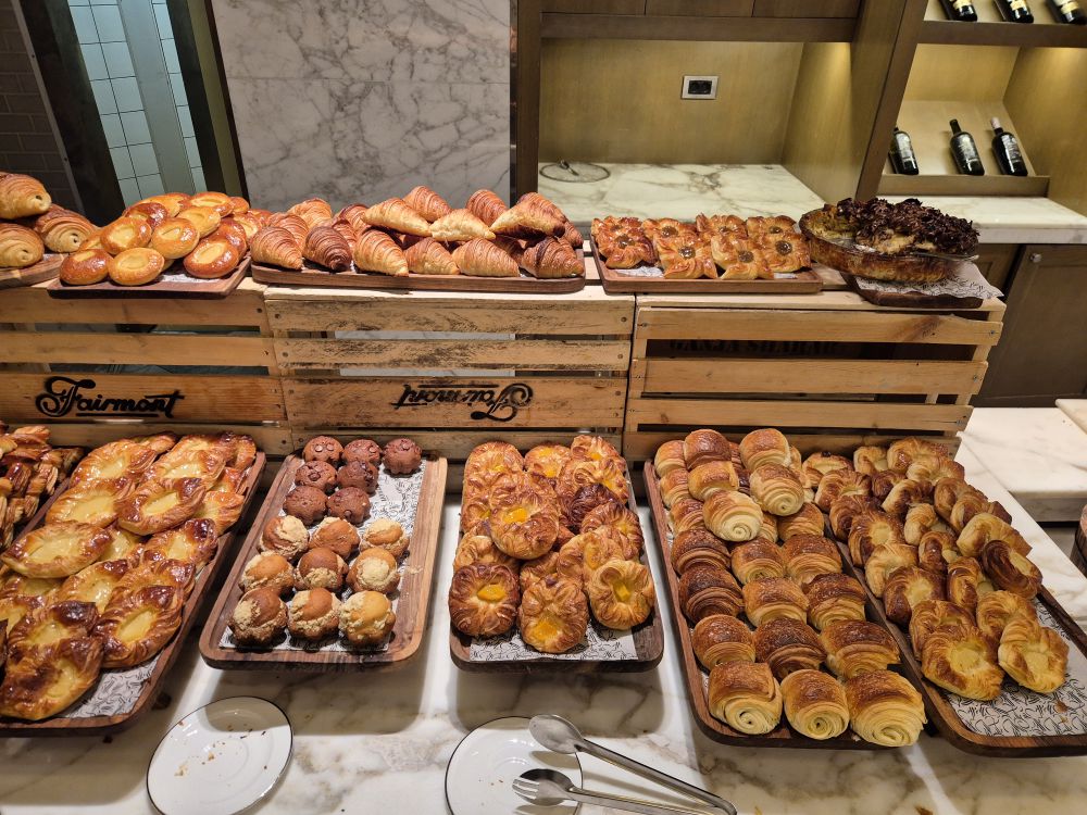 最后讲讲餐饮吧。办入住的时候前台看到我的预订有点迷惑,没搞懂消费额度,然后说就送你金樽待遇吧,我也就欣然接受。这家费尔蒙曾经是有金樽酒廊的,后来不知为何取消了,金樽礼遇就变成了自助早餐+下午茶+全天大堂吧软饮+自助晚餐。