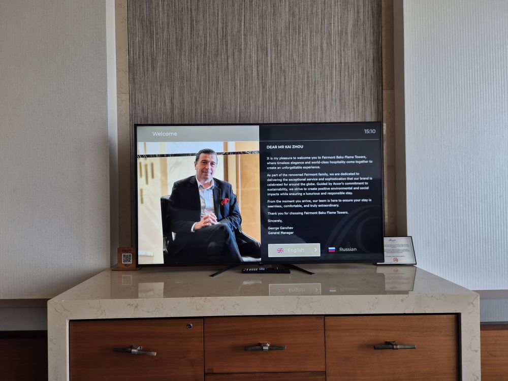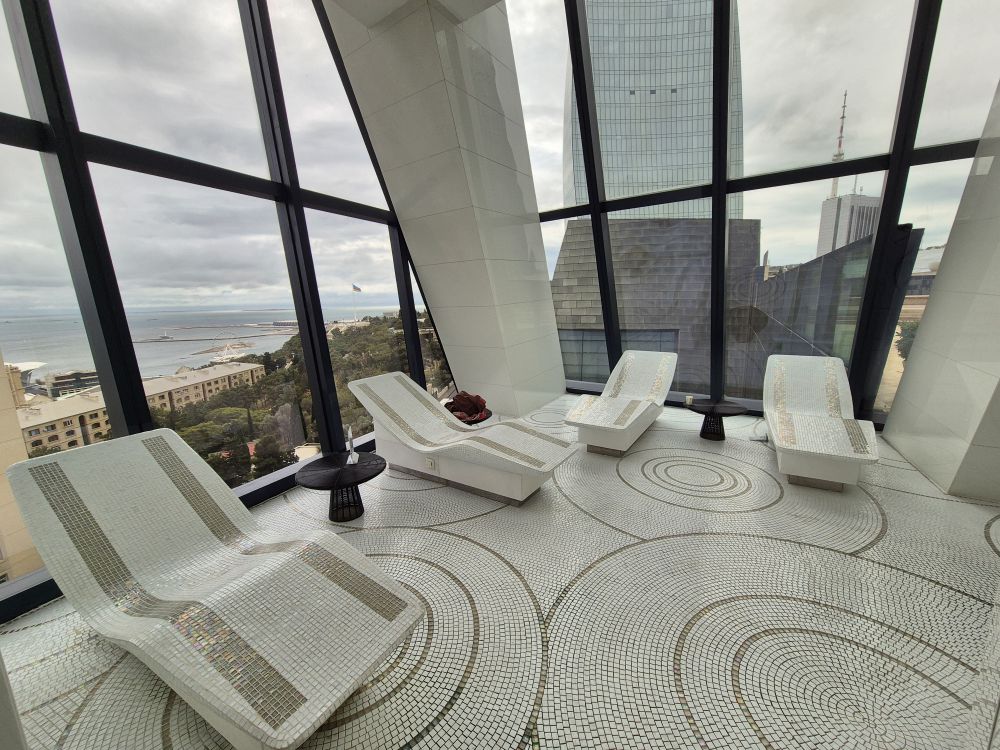 于是雅高旗下的费尔蒙酒店就进入了我的视角,首要原因就是通过八大洲订到了很便宜的Accor Hera专享价,1200块钱一晚美滋滋,有早餐和一百美元消费等福利。其次这家费尔蒙的地位很特殊,因为它在巴库的地标建筑火焰塔里: