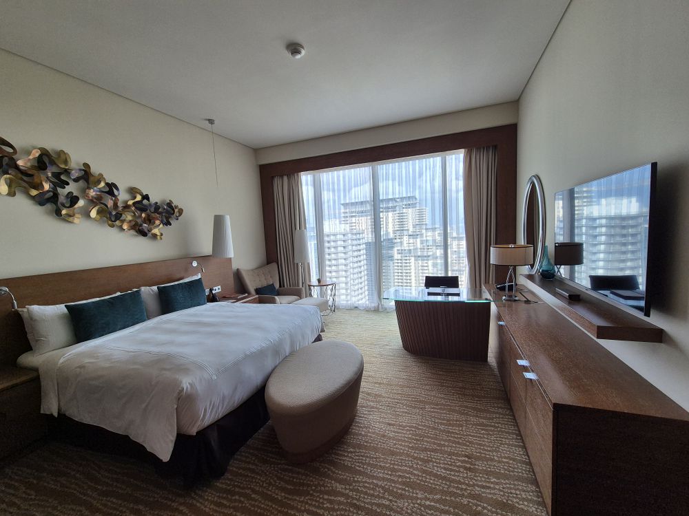 虽然硬装过气,但海景还是有点震撼的。毕竟有火焰塔的海拔加持,而且朝向很棒,个人感觉可能是城里海景最好的酒店;尤其是对比于JW万豪连个海景房都不给升,顿时好感拉满。如果你早起还能看日出。
