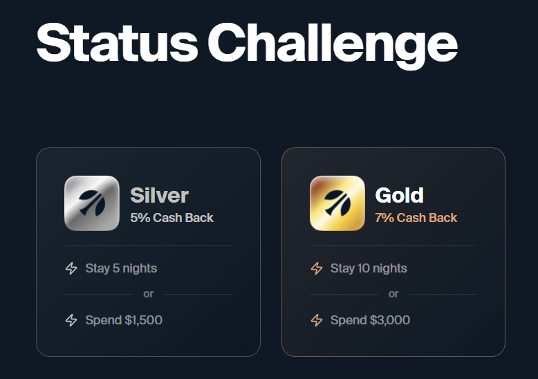 - 银卡:5晚或者$1,500消费,返现升级至5%