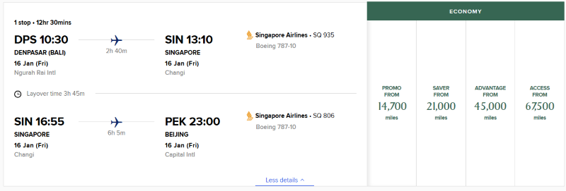 支持促销线路转机组合,比如巴厘岛-新加坡-北京: