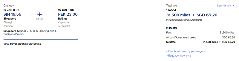 | 北京-新加坡 | SQ807 | 14,350 | |