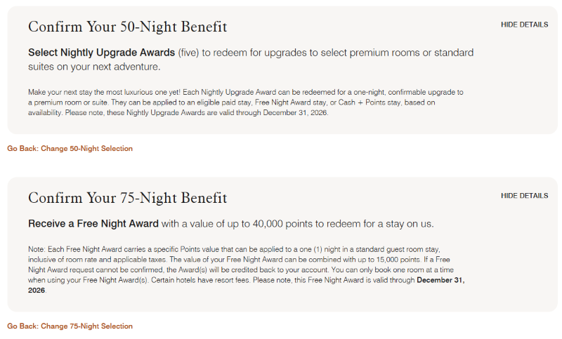各位万豪会员们也别忘了选择年度礼遇,我选的套房券+免房券,应该是比较经典的搭配了:
