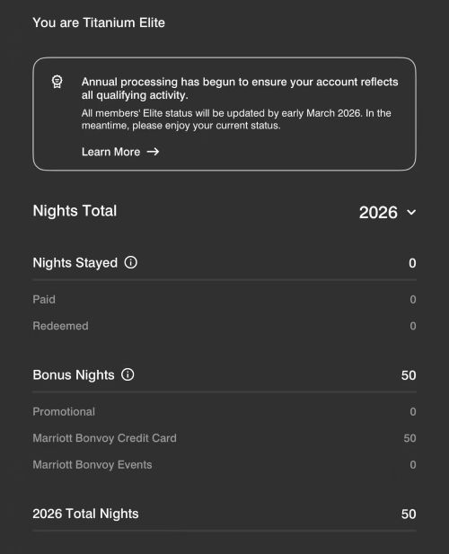 与此同时,有万豪联名卡的小伙伴们看眼app,房晚应该都到账了。我们有读者已经直接50晚入手,准备领套房券咯: