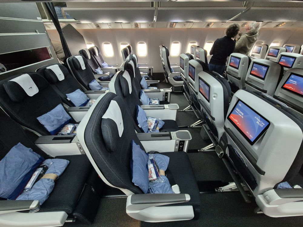 上次飞英国航空的超级经济舱已经是超过十年前,印象中是非常寒碜的老产品,这次也算是“打新”评测。和多数航司的宽体机配置一样,超级经济舱为2-4-2排布,比经济舱的3-4-3要宽松一些。对了,倒骑驴商务舱也是2-4-2哦!