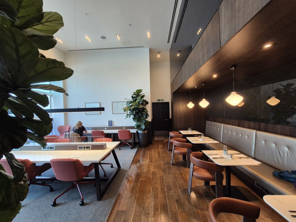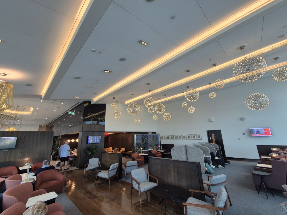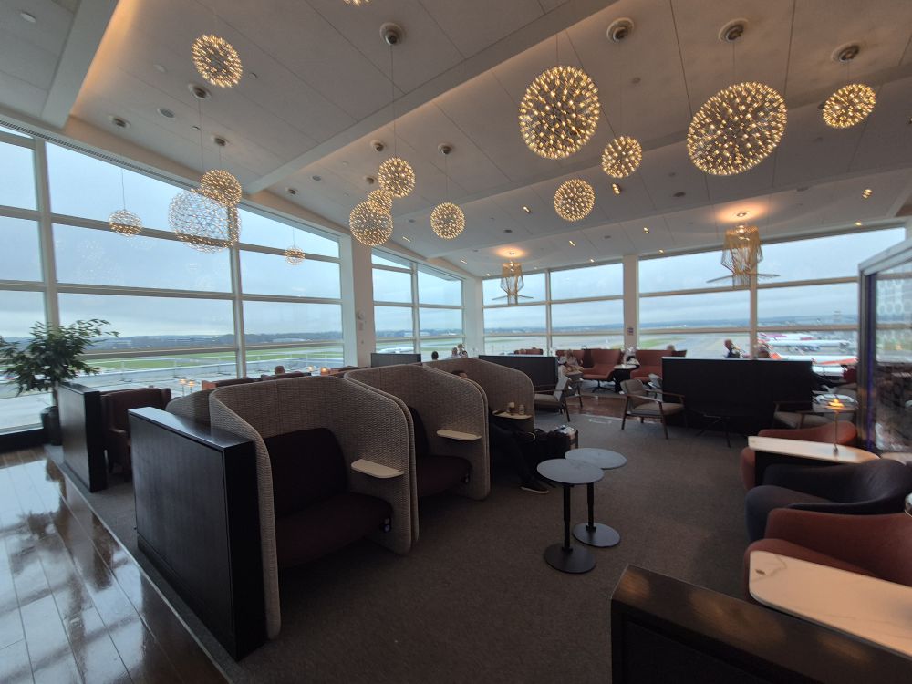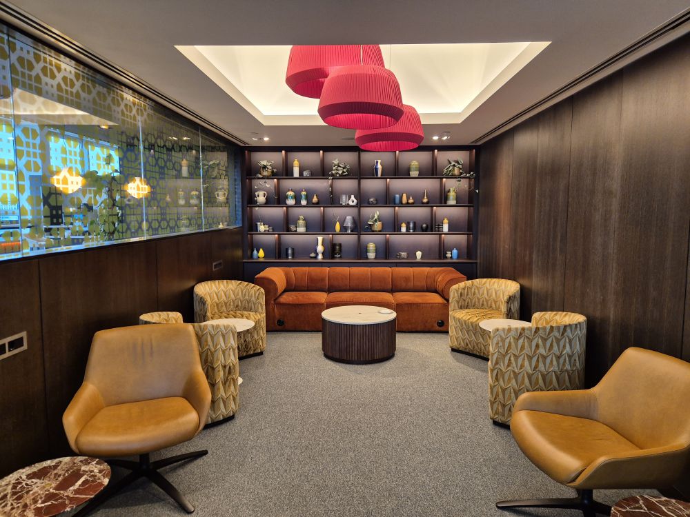 主要是开放式设计,面积不算大,毕竟盖特威的航班没有那么多。但也算是五脏俱全,囊括了应对不同需求的各类座椅设计。