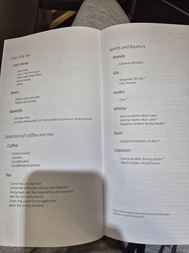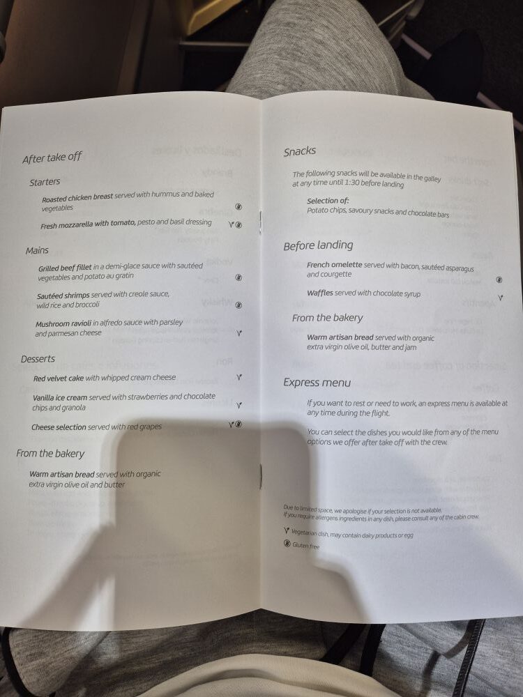包括酒水都是跟侍应生点单,只能说有鸡尾酒还不错吧。不废话了,上飞机!