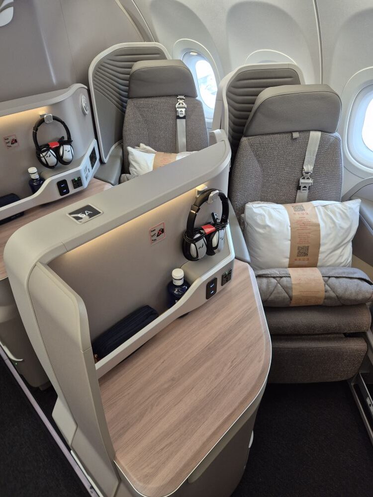 没错,既然定位是飞长途航线,那么座位配置自然也是对应的标准,因此商务舱是非常高端大气上档次的1-1排布,每一行只有两个座位!