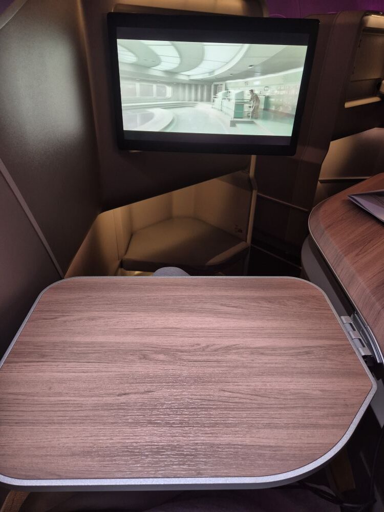 显示屏是嵌入式的,起降时间需要收回不过仍然可以继续收看,好在不是英航倒骑驴那种九十度、只能干瞪眼。