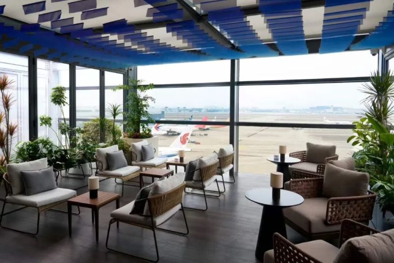 该休息室位于虹桥机场的T2航站楼,出发大厅安检前。