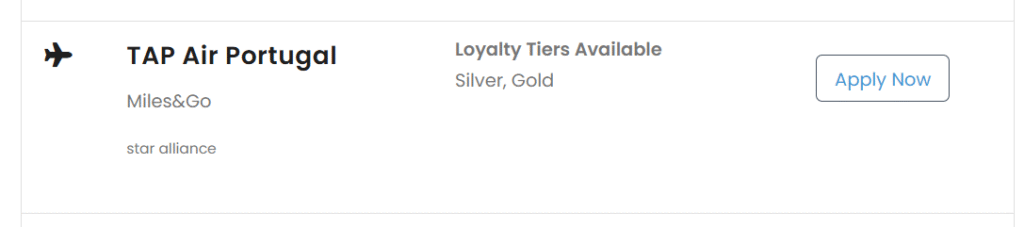 - Click Apply for status match on the left; if your status is eligible, an “Apply Now” button will appear next to TAP Air Portugal