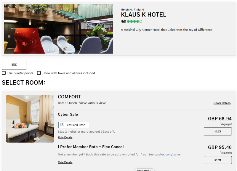 In Europe, the lowest rates can be found in Helsinki, the cheapest being Klaus K (which used to be Marriott-affiliated years ago):