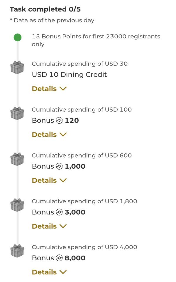 You can pick up 15 points easily with just a click, or every 100th member who registers for the promotion will receive 200 points instead. The terms aren’t very clear, but as I understand it these rewards are all cumulative. If you happen to be dining at Shangri-La anyway, the return is actually quite good.