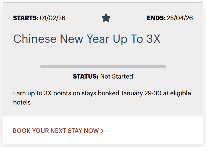 The highlight is that this can be stacked with other promotions, or example, the Q1 double points offer. When combined, that effectively becomes triple points. Do note however, that the Q1 double points only start from the second paid stay, and it ends earlier on 31 March. If you’ve already registered for the Q1 promotion, there’s no need to register separately for this one.