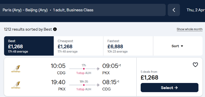 - Paris – Beijing: £1,298